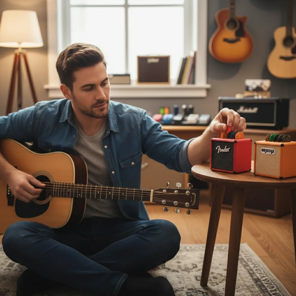 Don't let lost picks kill your groove. Each compact amp boasts five slots, ready for your essential tone-shapers. Keep your picks organized and right where you need 'em, whether you're jamming at home or shredding on stage. Never lose a pick again.