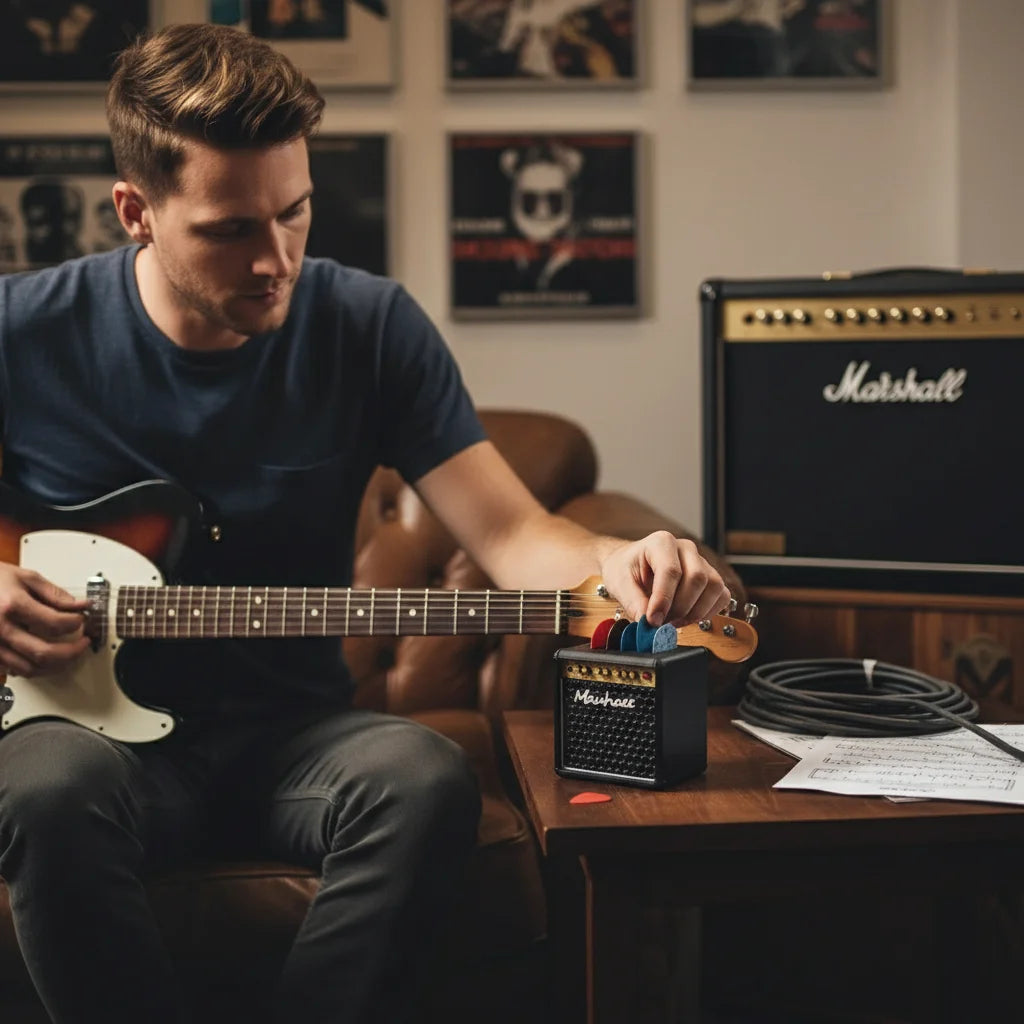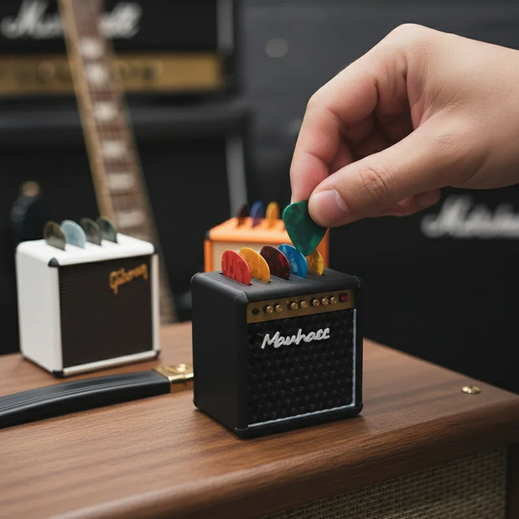This isn't just any pick holder; it's an iconic mini-amp replica! Designed for serious musicians, it keeps your essential picks organized, looks killer on your setup, and fits right in your gig bag. No more lost picks, just pure groove.