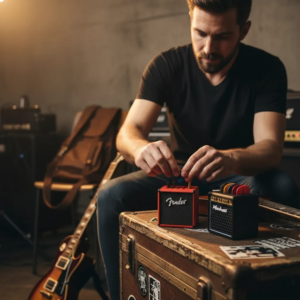 Tired of your picks vanishing mid-riff? This iconic mini-amp holder keeps your essentials locked down and looking sharp. It's compact, portable, and totally stage-worthy.